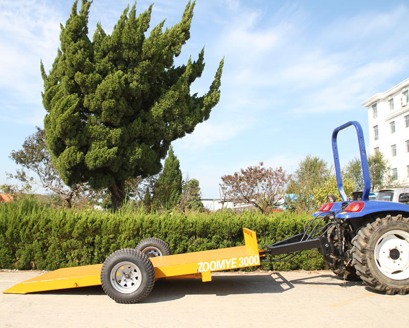 Chassis lifting transport trailer is a multi-purpose transport equipment developed by Zoomye Company to solve the problem of slow transition and difficult loading and unloading of farm crawler type equipment (crawler orchard management machine, crawler lawn mower, crawler excavator, crawler type pesticide sprayer, crawler type operation platform, etc.). It can flexibly load and unload various materials without forklift assistance. The trailer axle can be lifted and lowered under the action of the hydraulic cylinder (the lifting range can be customized), and the tail of the trunk bottom plate can fit perfectly with the ground under the action of the cylinder, forming a small included angle with the ground, which is convenient for the crawler type equipment to move up and down freely. Other wheeled equipment, fruit baskets, materials, etc. can also be loaded and unloaded freely through the trailer without forklift assistance.